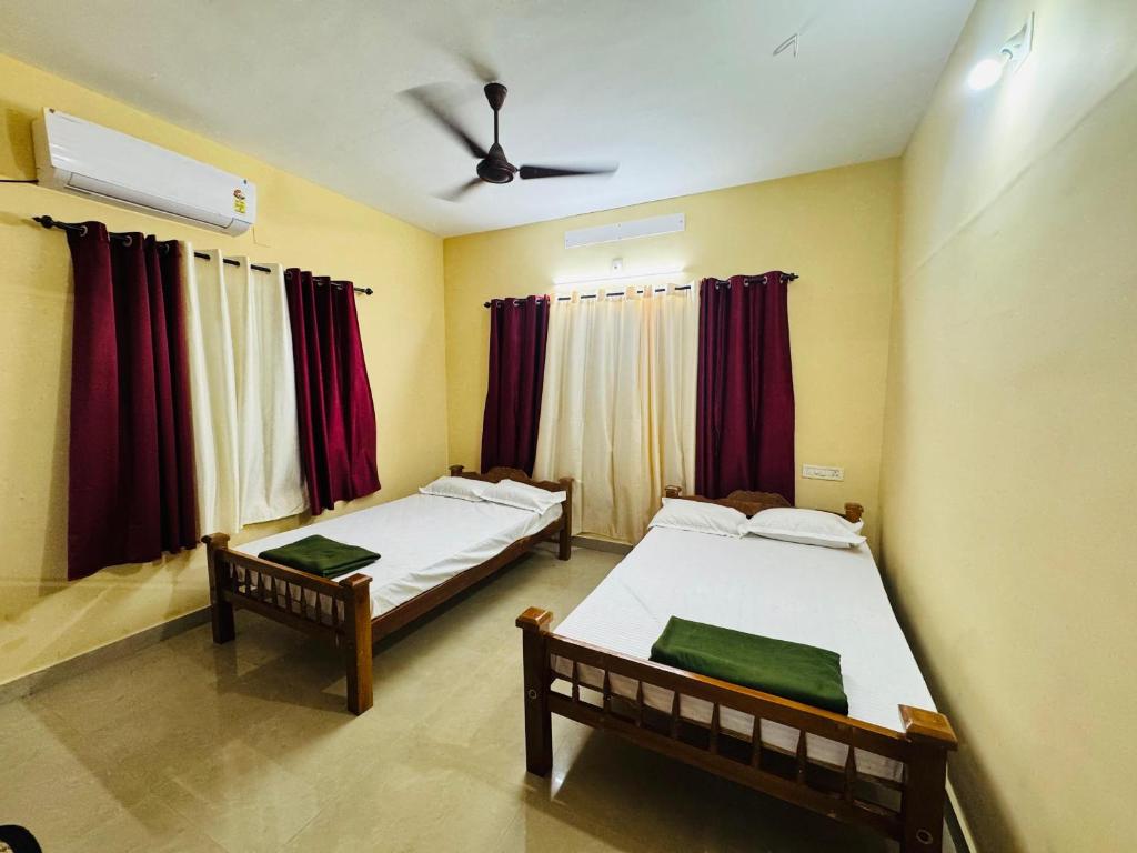 Texas Guest House 3 BHK (Ground Floor) in Thiruvananthapuram offers a spacious apartment with three bedrooms and three bathrooms. The ground-floor unit features a living room, dining area, and garden views. The apartment includes Air-conditioning and Free Toiletries. Additional amenities include a work desk, sofa bed, and soundproofing. Private check-in and check-out, paid airport shuttle, lounge, housekeeping, family rooms, full-day security, express services, car hire, and tour desk are available. Free on-site private parking is provided.